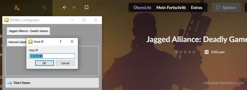 Undzwar - ich und mein Kumpel haben ein Problem damit den Multiplayer Modus des Spiels "JA: Deadly Games" auf GOG zu starten. Wir beide benutzen einen Windows 10 Rechner, haben beide die aktuelle Version von GOG Galaxy und die PCs sind über ein Netzwerk verbunden.