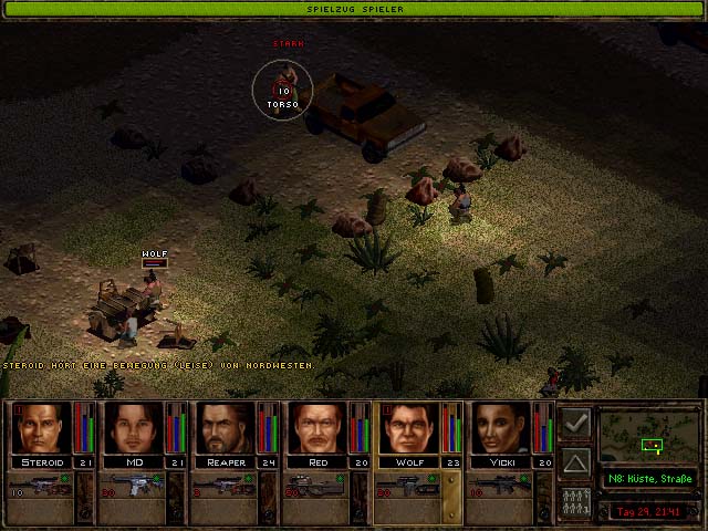 Zu den Waffen-AddOns: Bei Dl gab es einfach zu viele davon, da mußte man nicht knausern, bei JA2-Grundversion habe ich ziemlich lange gespart bis Team fertig war und Auswahl im Dpot gegeben war. Aufgrund meiner Abneigung gegen das Raketengewehr konnte ich so schon mit Dragunov und FN-FAL für B&F arbeiten, für die FA-MAS und G11 LV (plus ebentuell B&F, je nach Team).