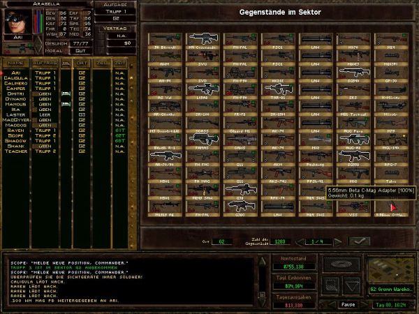 In einer Savegame vom ersten Tag, den ich mich mit v1.13 beschäftigt habe, und wo ich nur zum Testen einen Trupp zusammengestellt hatte, werden auch mehr als nur die bei mir üblichen vier Slots angezeigt, bei einer Waffe sogar sechs.